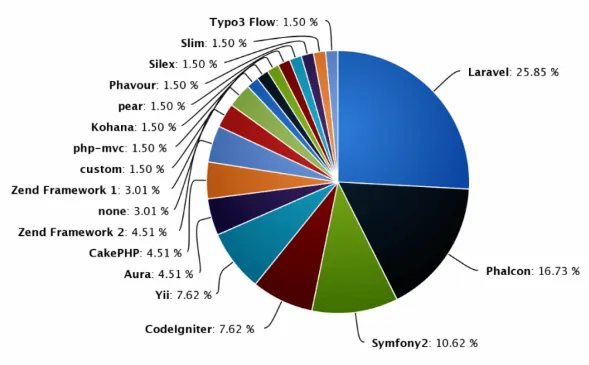 This PHP framework is young and promising, but it uses many best practices one needs for its business use. Here is the market share of the Laravel PHP framework: