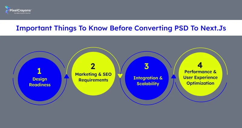 Bеforе starting thе convеrsion procеss, businеssеs must considеr tеchnical, markеting, and contеnt factors to еnsurе a smooth, еfficiеnt Nеxt.js implеmеntation: